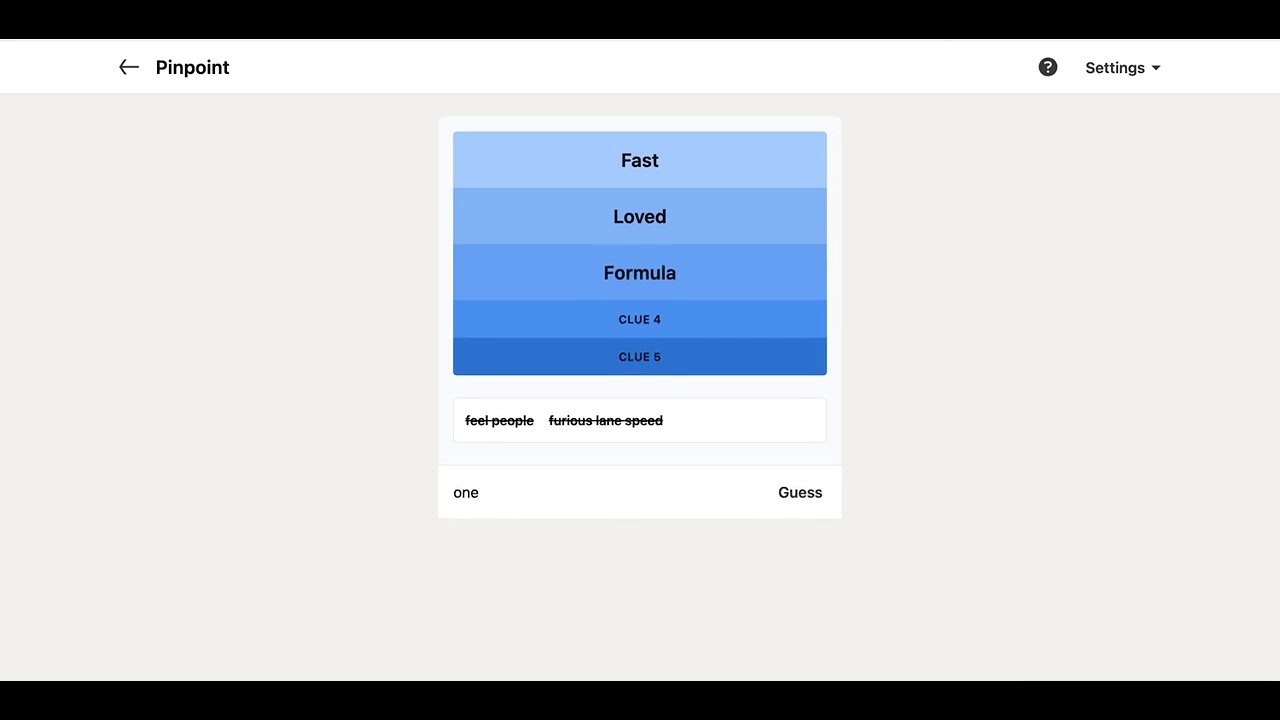 Pinpoint is a word association game where you try to guess the common category or theme linking a set of words. You’re given five clues to figure out this common category.
